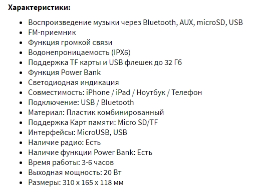 | Особливості | Функція гучного зв'язку, FM-приймач, Зарядка плеєра/смартфона, Підключення до ПК |